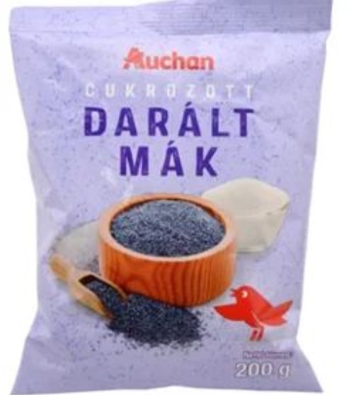 Idegen anyag esetleges jelenléte miatt visszahívta a forgalomból a 2025 áprilisi minőségmegőrzési idejű, 200 grammos Auchan Kedvenc darált cukrozott mák termékét az Auchan - közölte a Nemzeti Élelmiszerlánc-biztonsági Hivatal (Nébih).