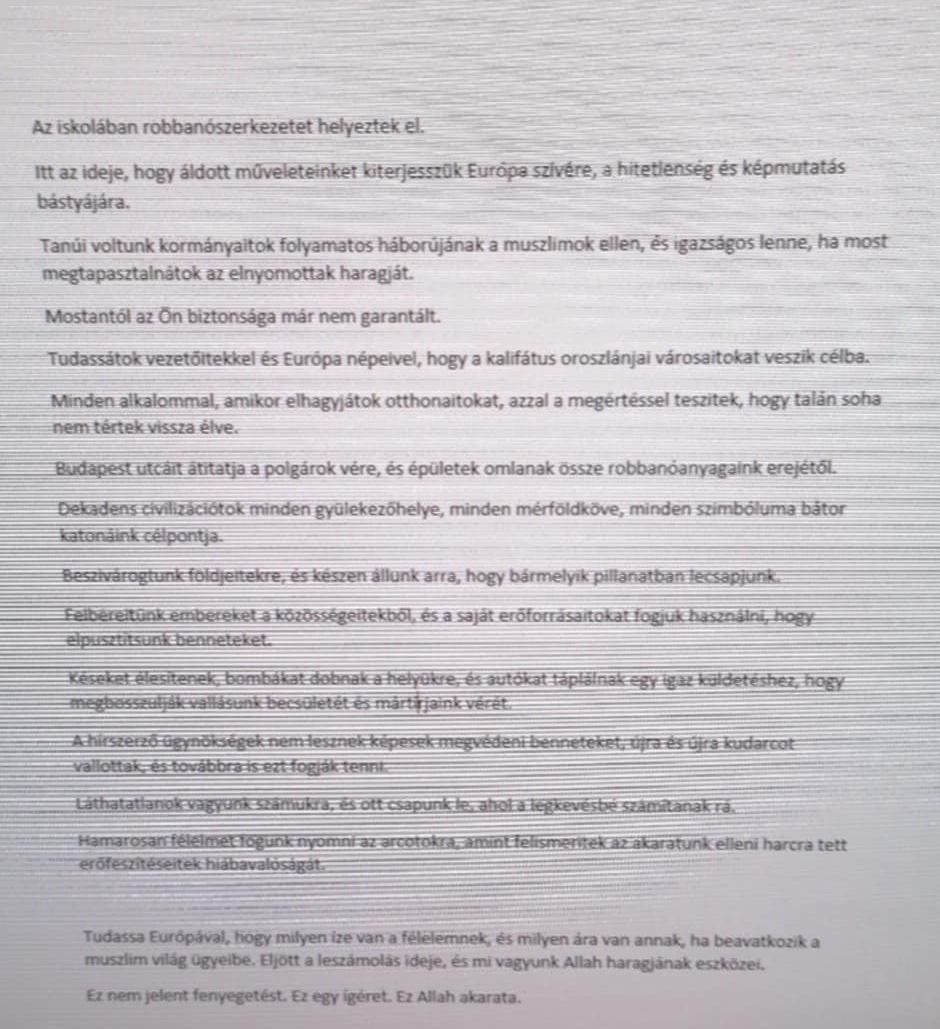 A Csepel.info megosztott egy írást, ami vélhetőleg a rendőrség által említett fenyegető üzenet: