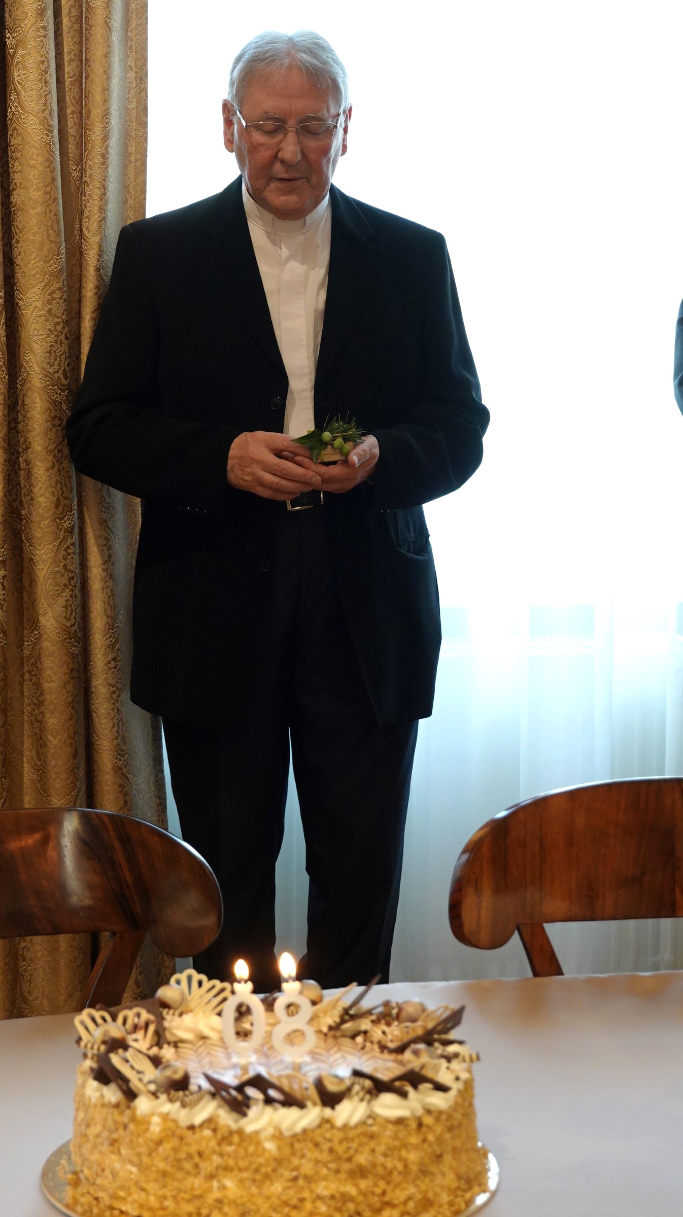 A Győri Egyházmegye Püspöki Hivatalának munkatársai bensőséges ünnepség keretében köszöntötték születésnapja alkalmából Németh László atyát.
