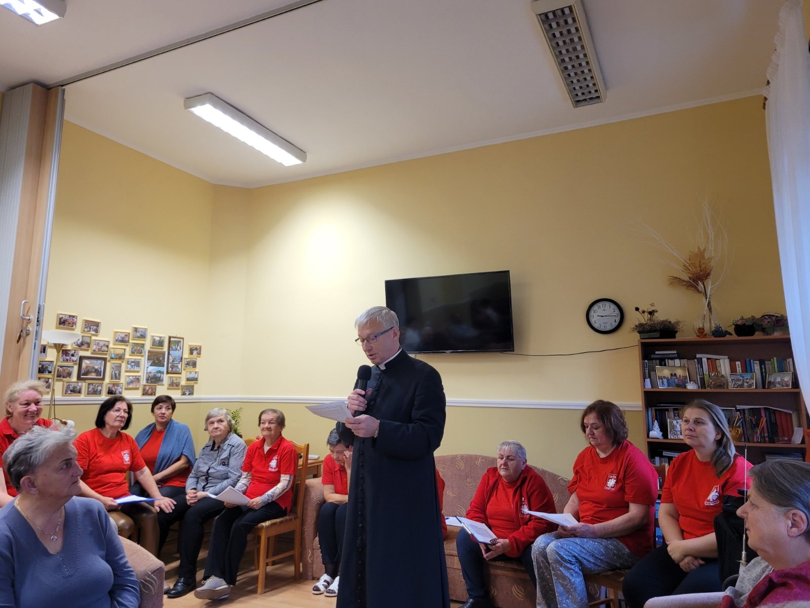 A rendezvényt Kozmáné Egyed Andrea intézményvezető köszöntője nyitotta meg, majd Winkler Zsolt atya meghitt gondolatokkal emlékeztetett arra, hogy a „Remény éve” van, és az imádság közelebb visz bennünket a mennyországhoz. Mint mondta: az öregség nem büntetés, hanem áldás.