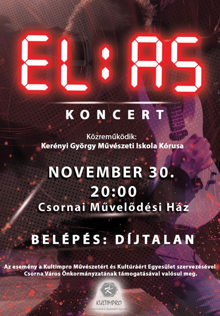 Ha szívesen visszarepülnél az időben, akkor ne hagyd ki az Elias zenekar koncertjét, ami most november 30-án, szombaton este nyolc órakor kerül megrendezésre a Csornai Városi Művelődési Házban, ahol a Kerényi György Művészeti Iskola Kórusa is közreműködik.