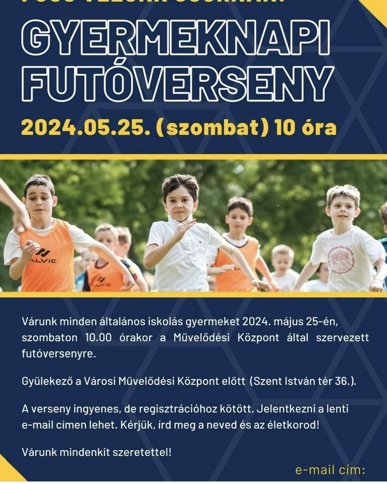 A városi Művelődési Központ május 25-én, szombaton délelőtt tíz órakor várja az általános iskolás gyermekeket egy felejthetetlen futóversenyre.