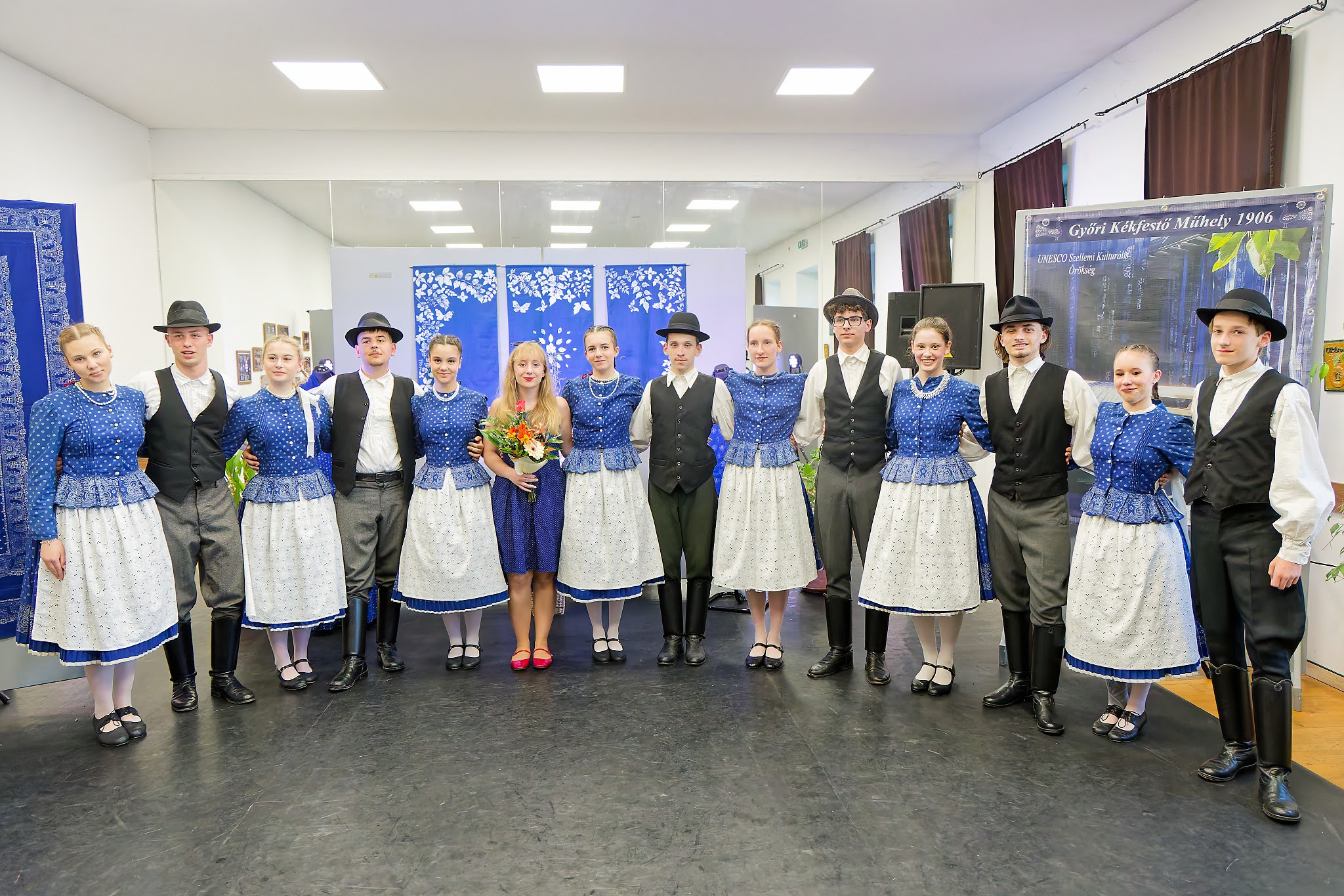 Április 28-án, vasárnap délután ünnepélyes keretek között nyílt meg „Kékre festett világ” címmel Gerencsér Enikő, az ország legfiatalabb kékfestőjének kiállítása a csornai Lengyel Sándor Művészetek Házában.