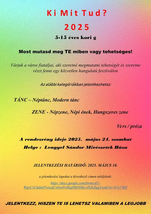 Várják a város fiataljait, aki szeretné megmutatni tehetségét, és szeretne részt venni egy közvetlen hangulatú fesztiválon.