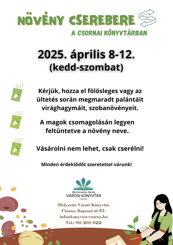 Növénycserebere a csornai könyvtárban