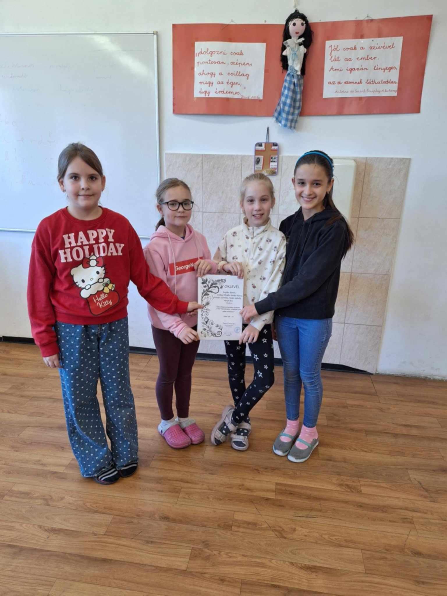 Halász Frida, Halász Lea, Karikás Elza Viktória, Karikás Johanna Zsanett, Seregély Rebeka (4.b)