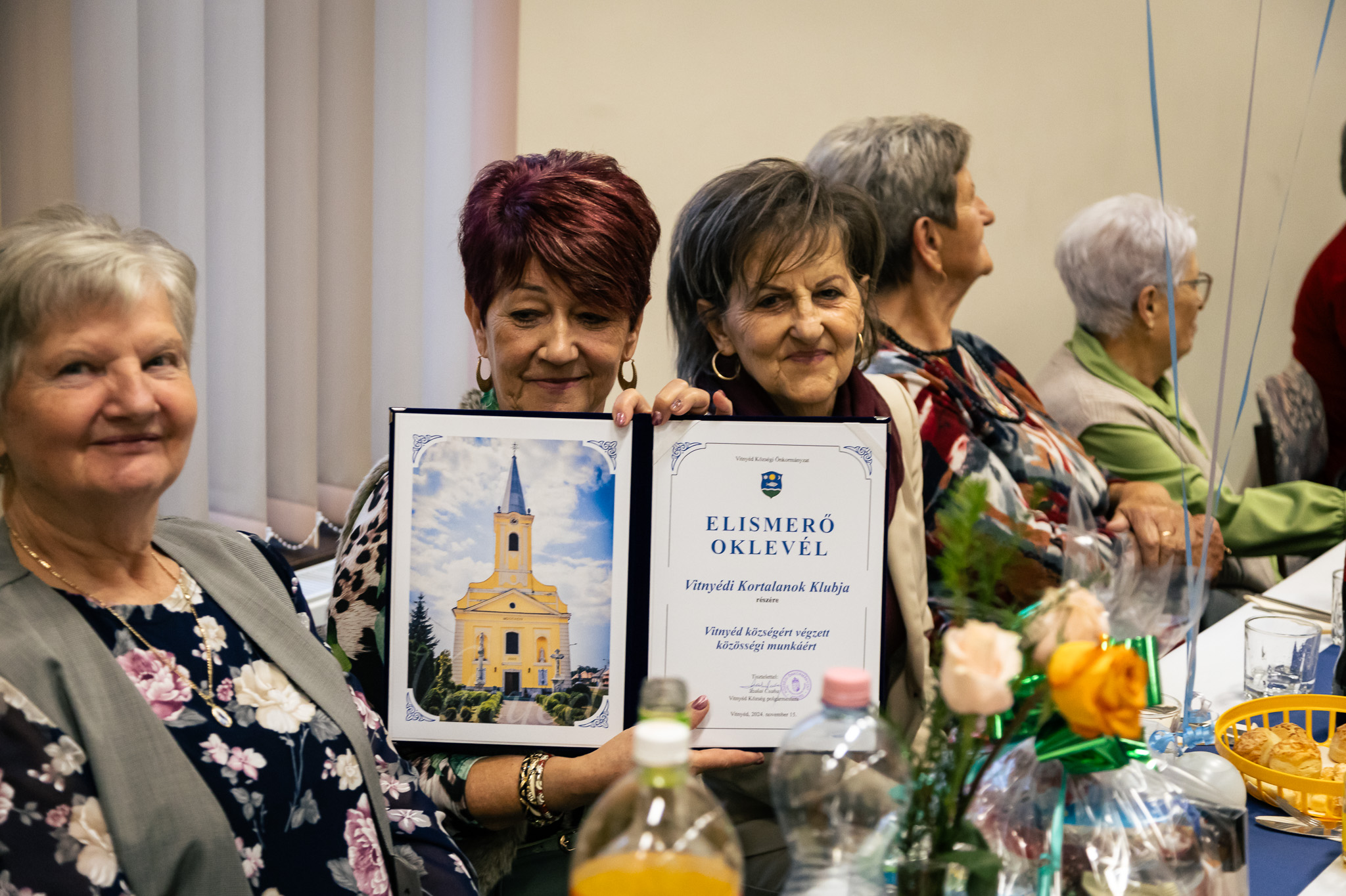 Elismerést adtak át a két éve működő közösségi szerveződésnek, a Kortalanok Klubjának. Kiemelten üdvözölték az immár negyven éve Vitnyéden tanító pedagógust, Némethné Tóth Annát, Panni tanító nénit.