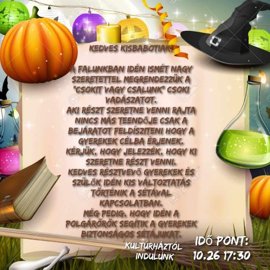 Kisbaboton idén is megrendezésre kerül a hagyományos "Csokit vagy csalunk" csokivadászat, amely minden évben nagy népszerűségnek örvend a helyi gyerekek és szülők körében.