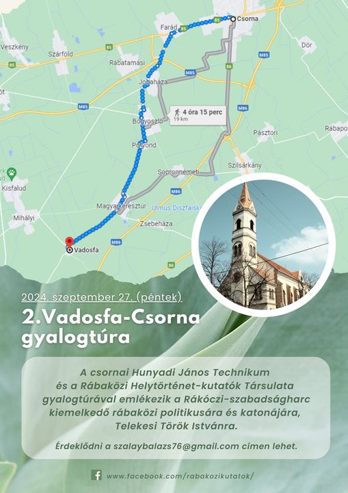 Szeptember 27-én, pénteken a csornai Hunyadi-iskola és a Rábaközi Helytörténet-kutatók Társulata közös gyalogtúrát szervez Telekesi Török István (1666–1722) emlékére.