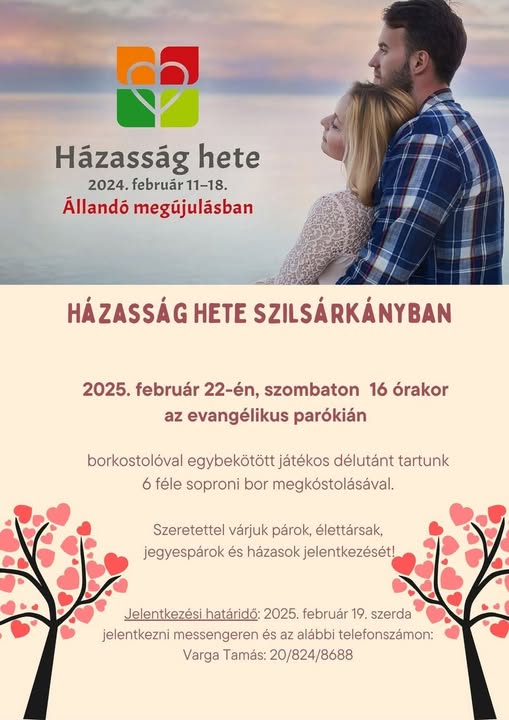 A Rábaszentandrási Evangélikus Egyházközség közösségi oldalán tudatta, hogy Szilsárkányban is egy különleges eseményre invitálják a párokat, amelyre február 22-én, szombaton délután négy órakor az evangélikus parókián kerül sor.