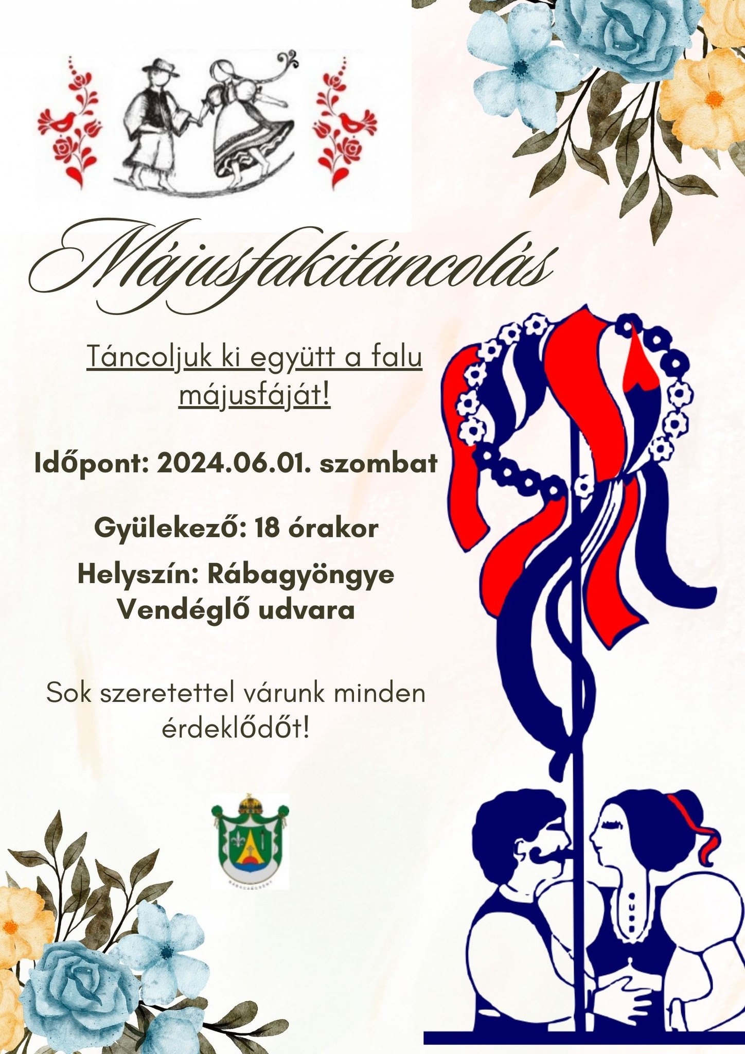 Szombat délután 6 órakor várják az érdeklődőket Rábacsécsényben a Rábagyöngye Vendéglő udvarára, hogy együtt táncolják ki a májusfát.