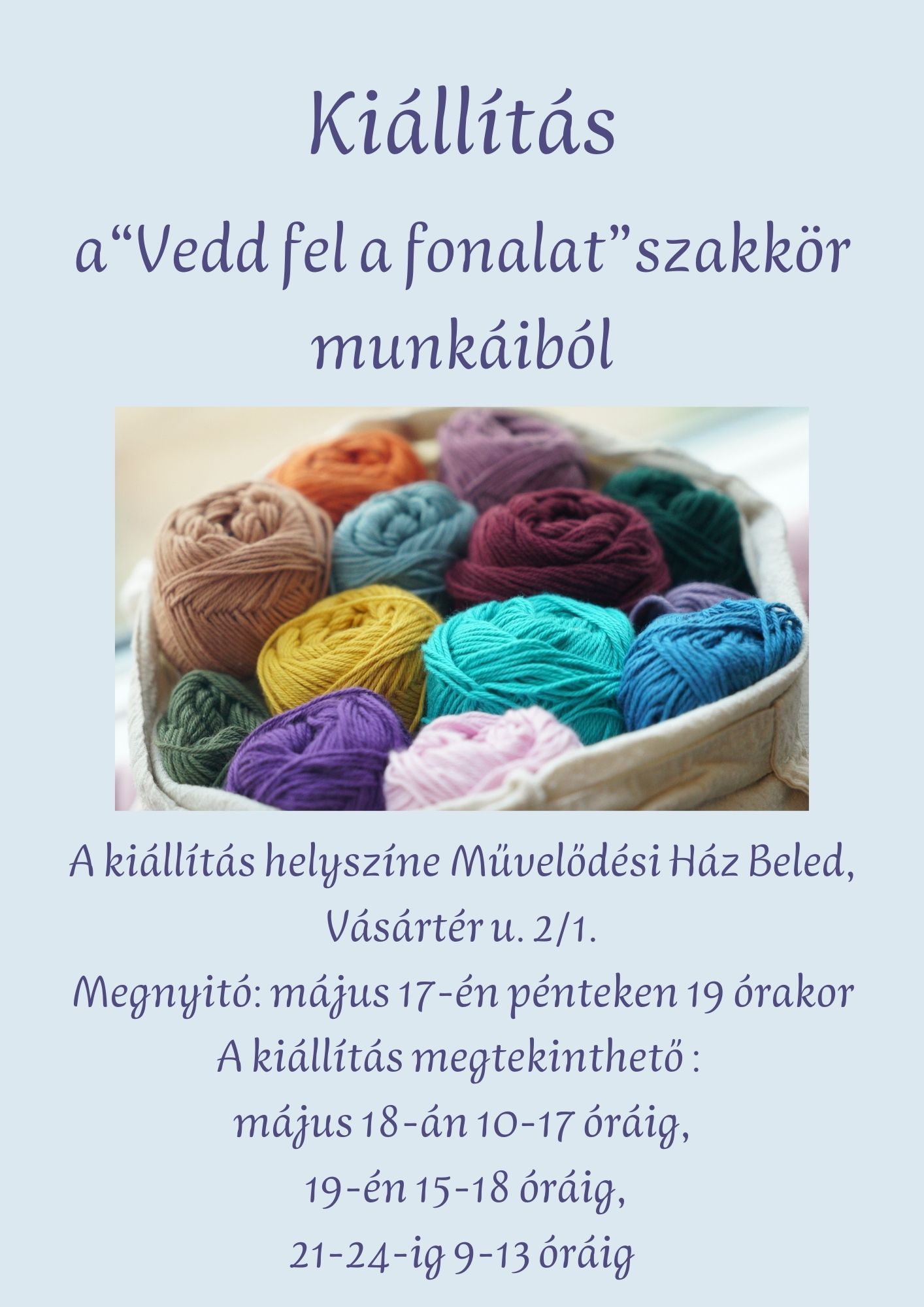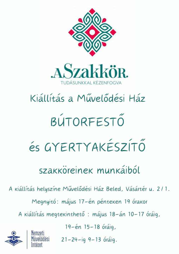 A „Vedd fel a fonalat” kézműves foglalkozáson, illetve a bútorfestő és gyertyakészítő szakkörön résztvevők munkáiból, Nagy Iván fafaragásaiból és Budai Viktória fazekas alkotásaiból álló kiállítást csodálhatják meg a látogatók. A festmények szerelmeseit is várják, hiszen Papp Márta Ilona a Krúdy Gyula Képzőművész díjas, Beőthy Művész Társaság Képzőművész és Ezüst plakett díjas kortárs festő kiállítását is szemügyre vehet. A festőművészhölgy kiállításnak fővédnöke Major Jenő Beled Város Polgármestere. Németh Nyiba Sándor a Budapesti Krúdy Gyula Irodalmi Kör Elnöke, a Magyar Kultúra Lovagja, Olimpikon. A festményhez írt versek alkotói a Budapesti Krúdy Gyula irodalmi Kör díjazott írói, költői.