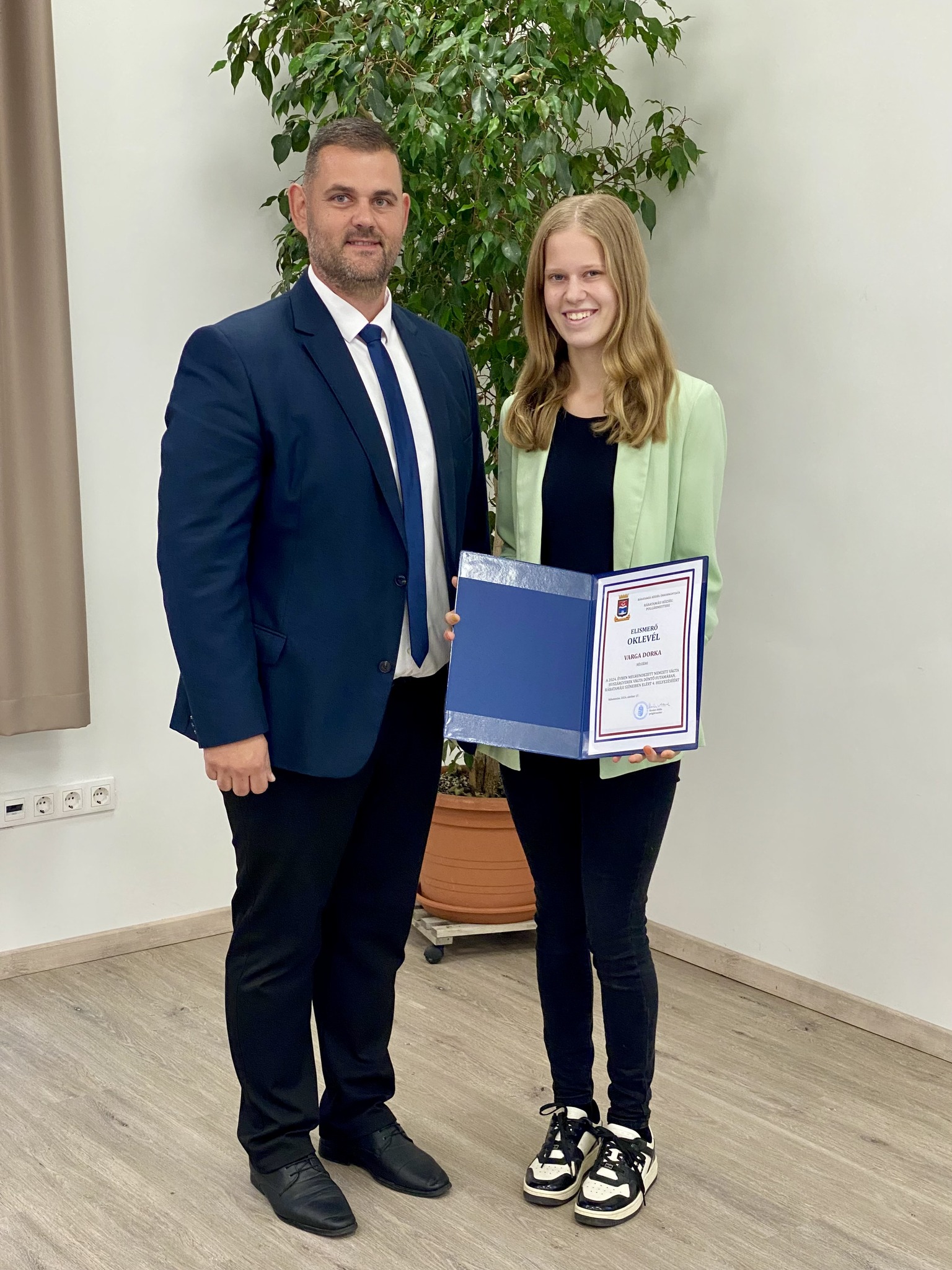 Varga Dorkának az oklevelet Kovács Attila polgármester adta át.