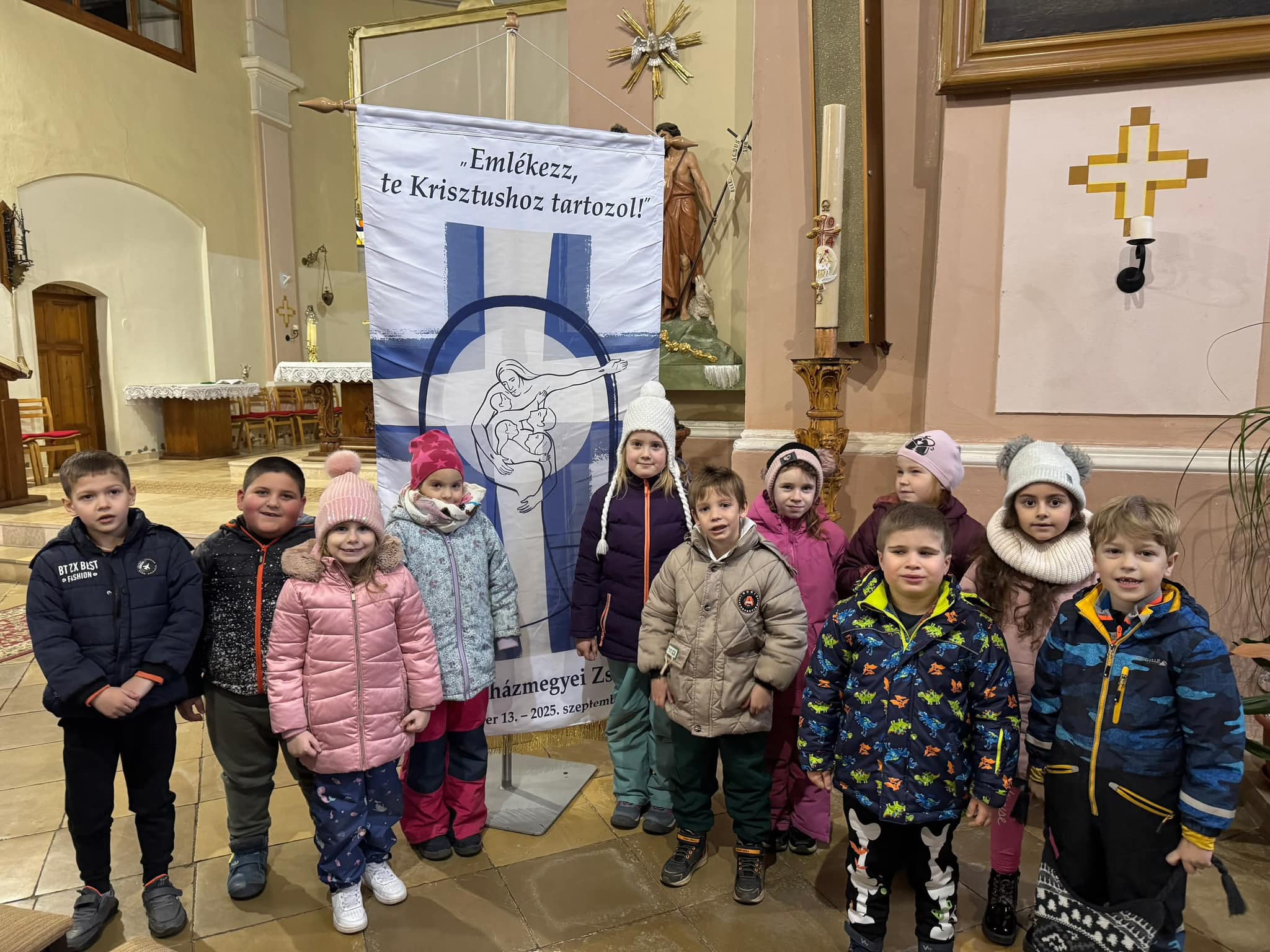 A templomi látogatás során a gyermekek nagy érdeklődéssel figyelték a zászló részleteit, a rajta megjelenő szimbólumokat és színeket. Óvodapedagógusaink segítségével elmagyaráztuk, hogy a zászló az egyházmegye közösségét jelképezi, amely összeköt bennünket hitünkben. Az óvodások kíváncsian tették fel kérdéseiket, és örömmel hallgatták a történeteket, amelyek közelebb hozták számukra a keresztény közösség összetartozásának érzését.