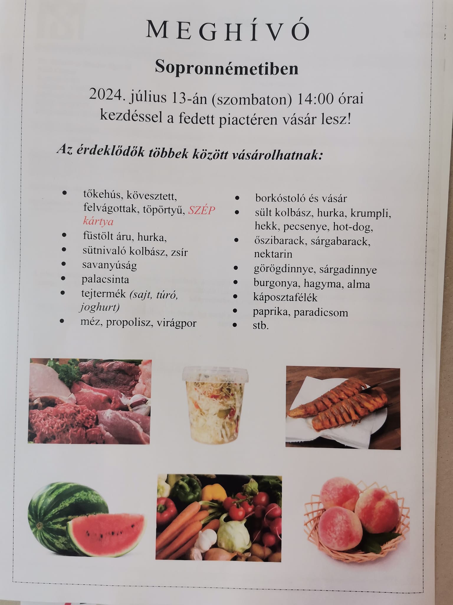 Termelői vásárt rendeznek a Rábaközben július 13-án, szombaton.